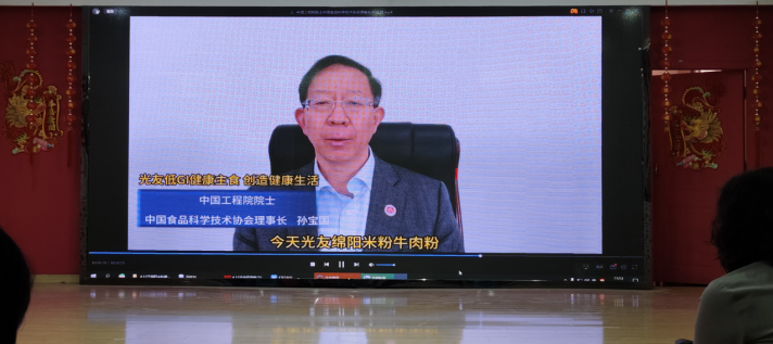 中國工程院院士、中國食品科學(xué)技術(shù)協(xié)會理事長孫寶國發(fā)來視頻祝賀《光友低GI健康主食 創(chuàng)造健康生活》:“2023年6月我和其他食品科學(xué)家一起應(yīng)邀到光友薯業(yè)參觀考察及成果評價,看見光友薯業(yè)32年專注薯類健康方便主食產(chǎn)業(yè),我們都很感動。光友薯類方便米粉是由鄒光友為課題負(fù)責(zé)人,研發(fā)完成國家十三五薯類方便主食中的一項重大成果,我多次組織技術(shù)成果評價,均評價為國際領(lǐng)先水平。今天,光友綿陽米粉牛肉米粉獲得低GI健康食品認(rèn)證,并召開新聞發(fā)布會向全球推廣,這是食品行業(yè)的一大喜訊,向光友薯業(yè)表示祝賀!”。