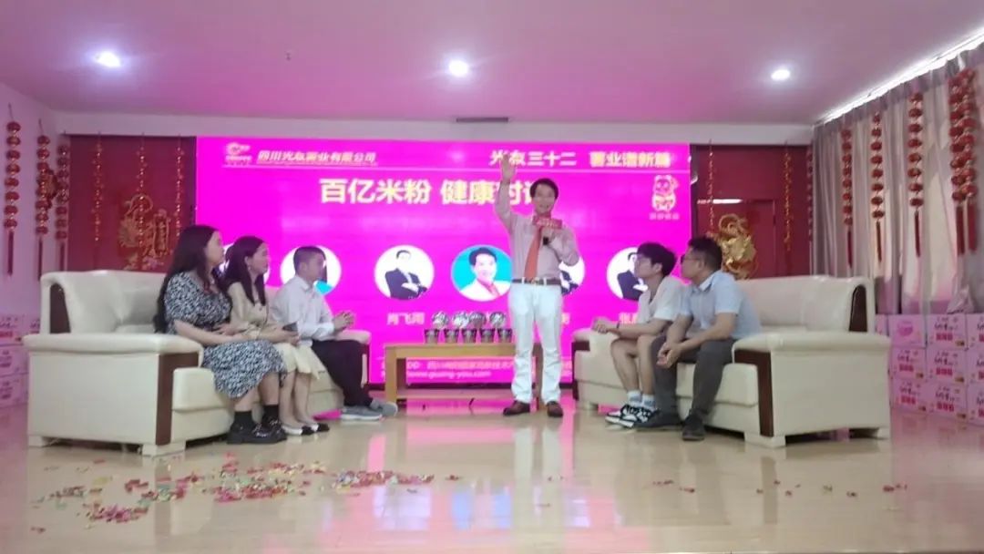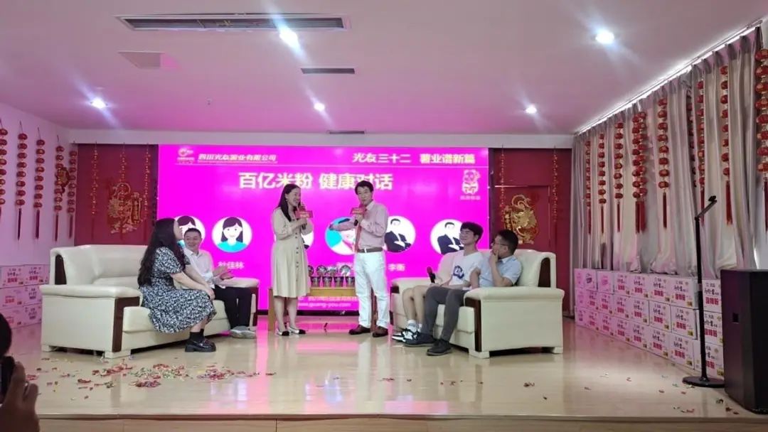 為更直觀地了解光友薯類(lèi)健康主食,本次活動(dòng)還特別邀請(qǐng)五位嘉賓上臺(tái)與鄒光友董事長(zhǎng)現(xiàn)場(chǎng)健康對(duì)話(huà),對(duì)話(huà)的嘉賓分別是綿陽(yáng)城市學(xué)院雙創(chuàng)中心主任李衡、綿陽(yáng)市靖華節(jié)能環(huán)??萍级麻L(zhǎng)王華、四川敬科智能裝備科技副總經(jīng)理肖飛雨、綿陽(yáng)西城大學(xué)生創(chuàng)新創(chuàng)業(yè)園創(chuàng)業(yè)導(dǎo)師杜佳林、綿陽(yáng)城市學(xué)院雙創(chuàng)中心何愛(ài)清,與會(huì)嘉賓在這里共同探討米粉行業(yè)的未來(lái)發(fā)展趨勢(shì)及健康飲食的重要性,共享基地帶動(dòng)大學(xué)生創(chuàng)新創(chuàng)業(yè)發(fā)展。