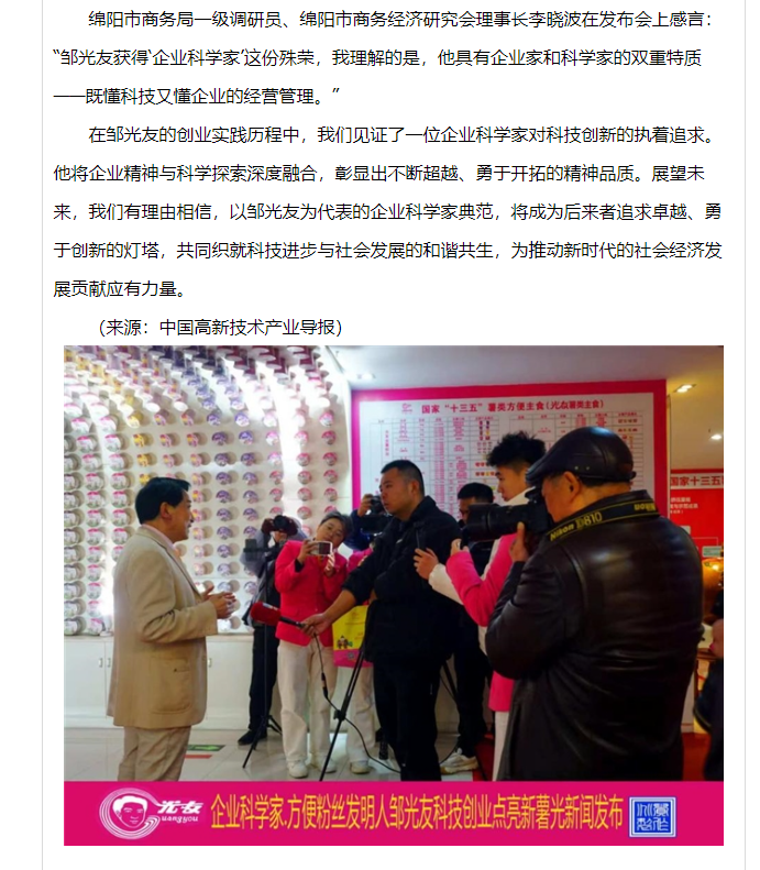 轉(zhuǎn)載華西新聞——企業(yè)科學(xué)家鄒光友:科技創(chuàng)業(yè)點亮新“薯”光
