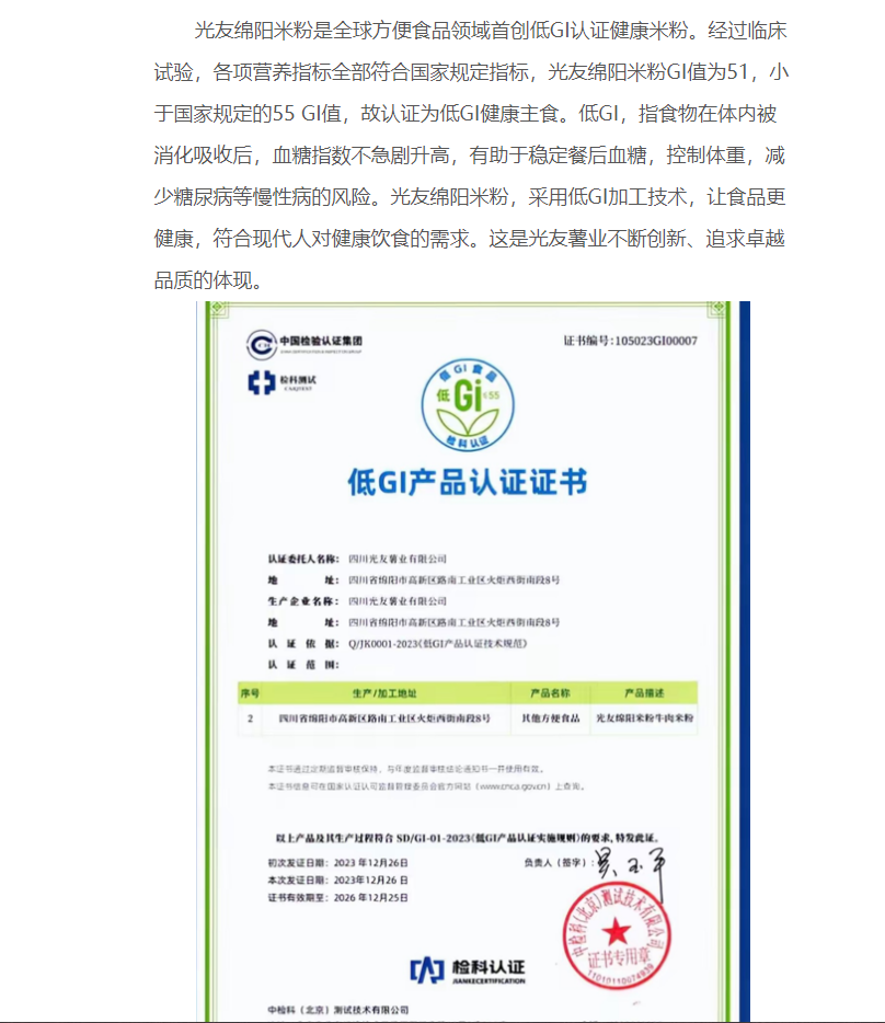 轉(zhuǎn)載中國食品新聞網(wǎng)——光友綿陽米粉“低GI健康好主食新聞發(fā)布會”在京舉行