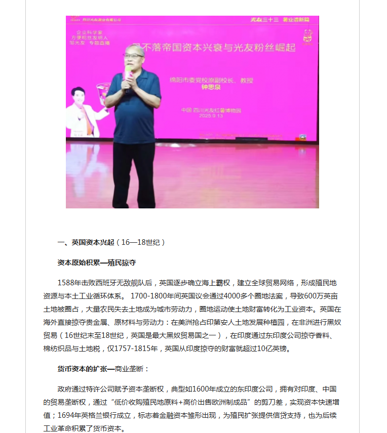 轉載四川經濟新聞網-日不落帝國資本興衰與中國光友粉絲崛起